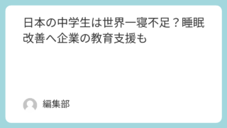 健康 日本の中学生は世界一寝不足?睡眠改善へ企業の教育支援も このニュースが報じられた年月日2025年7月2日同じニュースを報じている記事一覧とリンク共同通信社: 中学生の睡眠不足解消をサポート パラマウントベッドが、睡眠の大切さを学ぶ教材を無料で継続提供ICT教育ニュース: パラマウントベッド、全国... 2025.07.03 健康教育社会