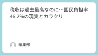 社会 税収は過去最高なのに…国民負担率46.2%の現実とカラクリ このニュースが報じられた年月日2025年7月2日同じニュースを報じている記事一覧とリンク時事ドットコム: 国の税収、5年連続最高=75.2兆円、法人税伸びる―24年度財務省: 令和7年度の国民負担率を公表します税理士法人山田&パートナーズ:... 2025.07.03 社会経済金融