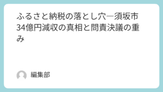 政治 ふるさと納税の落とし穴―須坂市34億円減収の真相と問責決議の重み このニュースが報じられた年月日2025年7月2日同じニュースを報じている記事一覧とリンクNBS長野放送: 須坂市長への「問責決議案」が可決 ふるさと納税返礼品“産地偽装”問題受け信濃毎日新聞: 「長期政権の緩み」「間違った方向に行ってしまう... 2025.07.04 政治社会