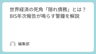 国際情勢 世界経済の死角「隠れ債務」とは? BIS年次報告が鳴らす警鐘を解説 このニュースが報じられた年月日2025年7月3日同じニュースを報じている記事一覧とリンク日本経済新聞: 米ドル「隠れ債務」が1.4京円、BISが警鐘 金融危機の火種に麗澤大学 (日本経済新聞掲載情報): 【メディア掲載】経済学部 中島真志教... 2025.07.04 国際情勢経済金融