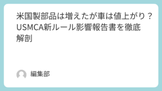 国際情勢 米国製部品は増えたが車は値上がり? USMCA新ルール影響報告書を徹底解剖 このニュースが報じられた年月日2025年7月3日同じニュースを報じている記事一覧とリンクジェトロ:(米国際貿易委、USMCA自動車原産地規則の経済的影響に関する報告書を発表)U.S. International Trade Commissi... 2025.07.04 国際情勢経済