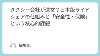交通 タクシー会社が運営?日本版ライドシェアの仕組みと「安全性・保険」という核心的課題 このニュースが報じられた年月日2024年04月01日 (本格的な制度開始時期)同じニュースを報じている記事一覧とリンク国土交通省: 自家用車活用事業(日本版ライドシェア)について自動車運行管理ラボ: 日本型ライドシェアの特徴は?海外との違い... 2025.07.05 交通法律社会