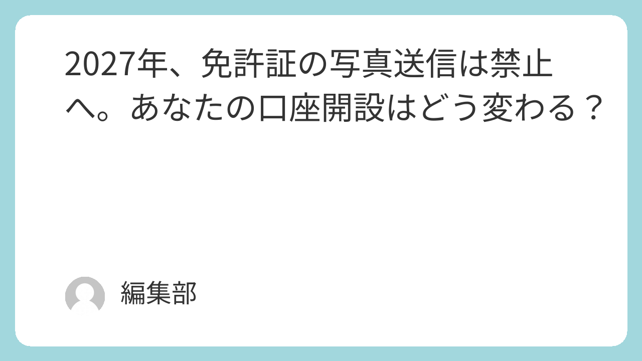 2027年、免許証の写真送信は禁止へ。あなたの口座開設はどう変わる?