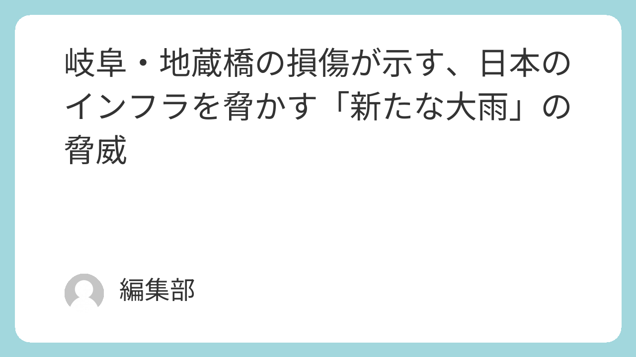 岐阜・地蔵橋の損傷が示す、日本のインフラを脅かす「新たな大雨」の脅威
