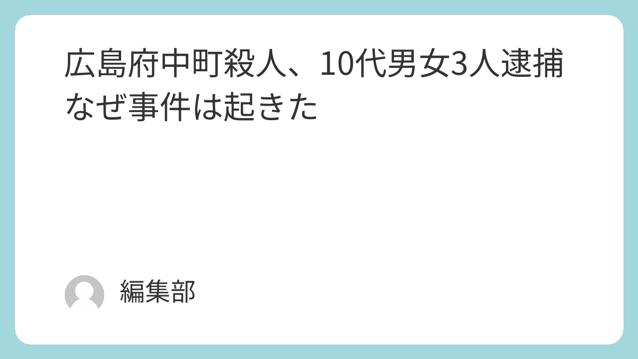 広島府中町殺人、10代男女3人逮捕 なぜ事件は起きた