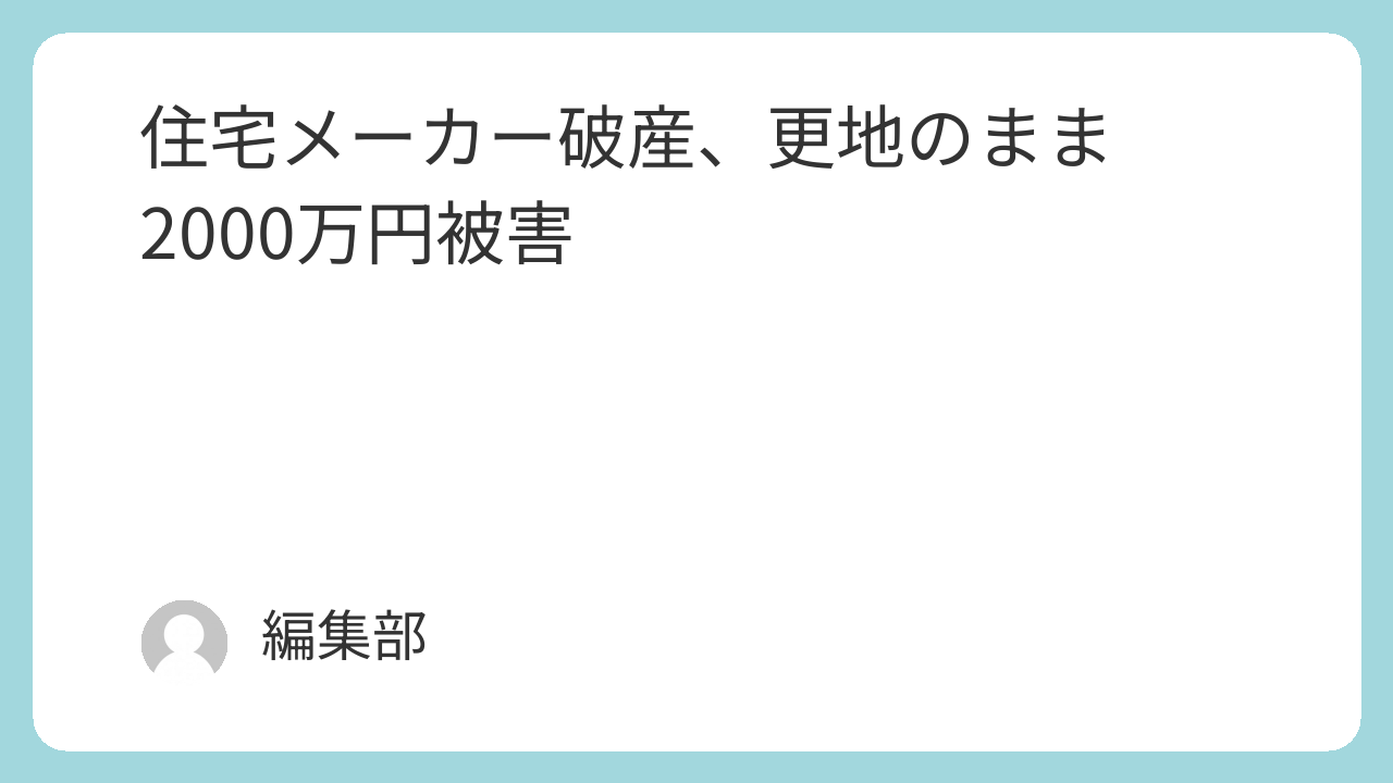 - 住宅メーカー「ニコハウス」が自己破産し、約2000万円を支払った顧客の土地が更地のまま放置されていることが判明しました 。