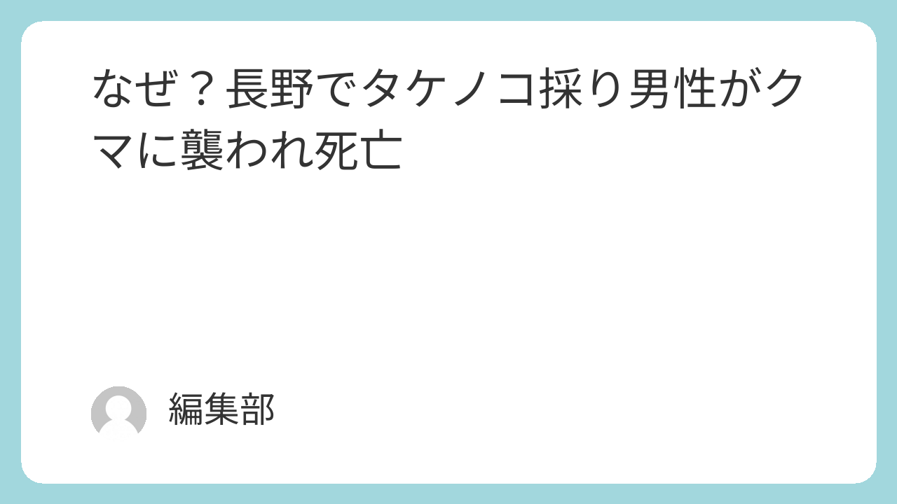 2025年6月22日午前10時過ぎ、長野県大町市八坂地区の山林で、タケノコ採り中の男性2人が成獣とみられるクマ1頭に襲われました 。このうち46歳の男性が死亡、70歳の男性が負傷しました。襲われた男性本人からの通報で事件が発覚しました 。