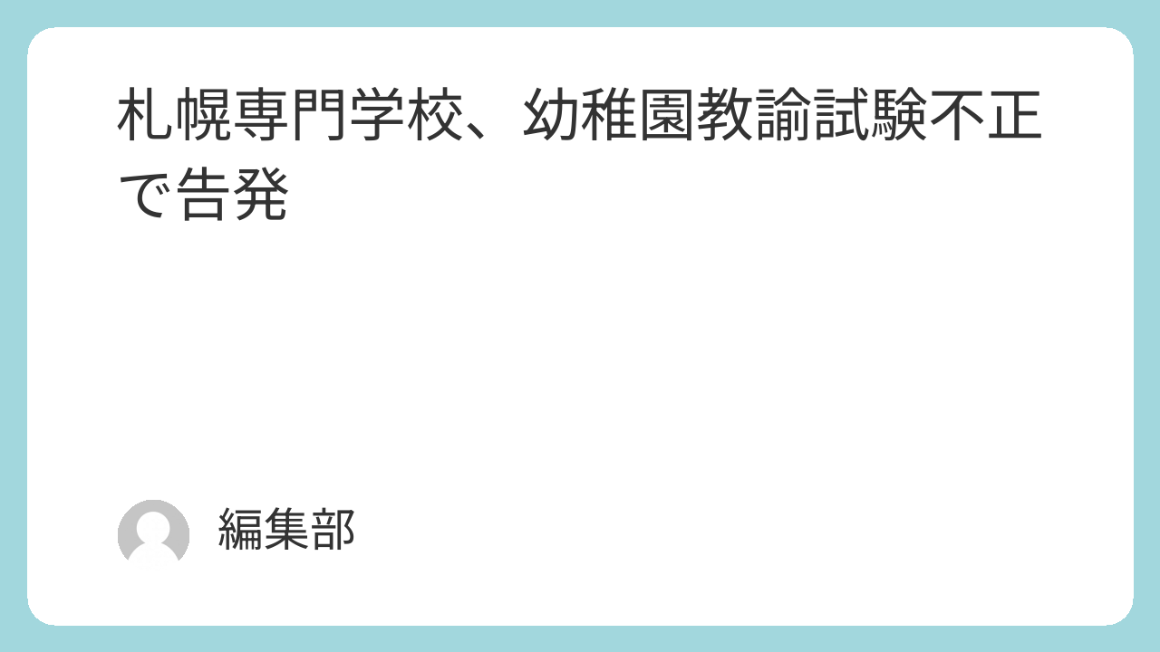 - 札幌こども専門学校で、幼稚園教諭免許取得に必要な試験において模範解答の丸写しが容認されていた疑惑が浮上しました 。