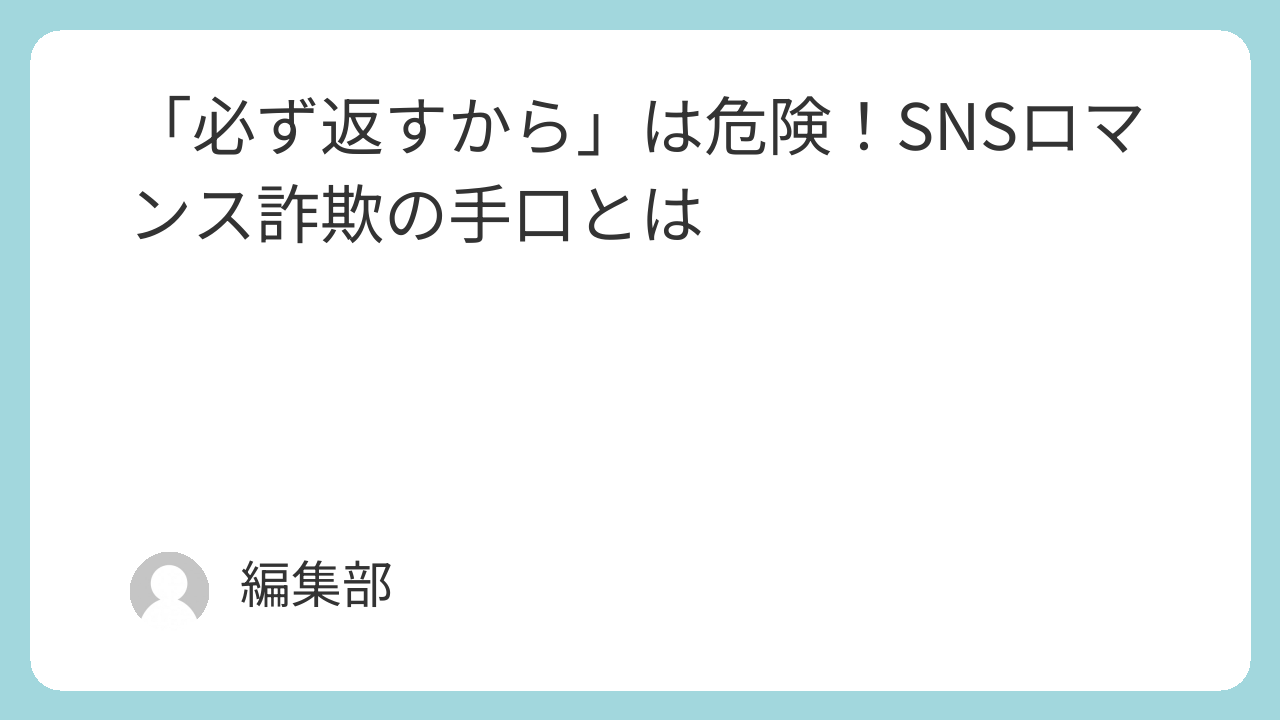 - 警察庁による注意喚起: ロマンス詐欺に要注意!~その恋、仕組まれた罠かも?~