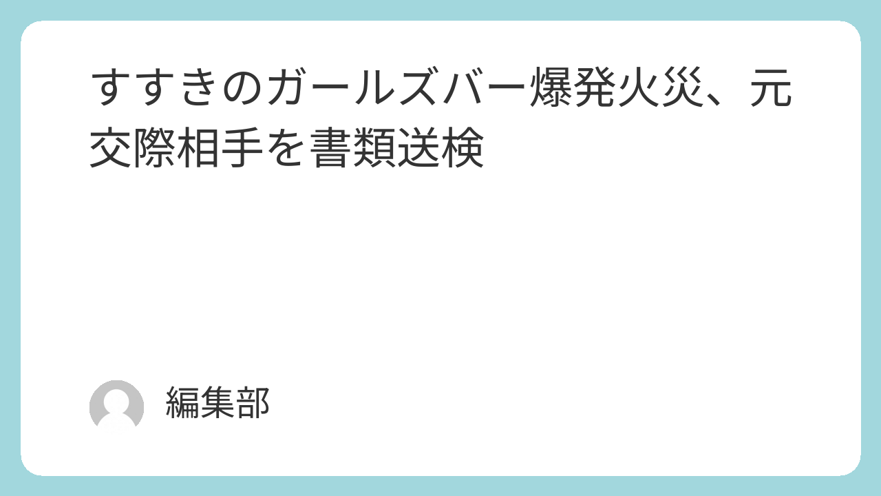 - HTB北海道ニュース: すすきのガールズバー爆発火災 従業員の元交際相手を容疑者死亡で書類送検へ 放火・殺人未遂などの疑い