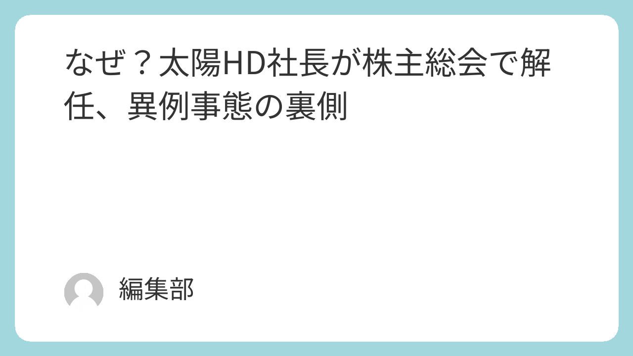 なぜ?太陽HD社長が株主総会で解任、異例事態の裏側