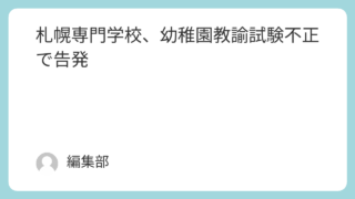 教育 札幌専門学校、幼稚園教諭試験不正で告発 このニュースが報じられた年月日2025年06月18日同じニュースを報じている記事一覧とリンクABEMA: ほぼ全員「100点」幼稚園教諭試験“解答丸写し”容認か 試験で教科書持ち込み可能にSTV札幌テレビ: 告発した男性教員が懲戒解雇 専門... 2025.06.22 教育法律社会
