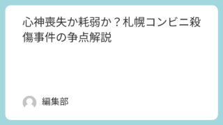 事件 心神喪失か耗弱か?札幌コンビニ殺傷事件の争点解説 このニュースが報じられた年月日2025年06月23日同じニュースを報じている記事一覧とリンクHTB北海道ニュース: 「やむを得なかった」札幌コンビニ殺害 初公判で被告は起訴内容認めるFNNプライムオンライン: 【コンビニ3人殺傷事件】初公判... 2025.06.23 事件法律