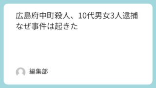 事件 広島府中町殺人、10代男女3人逮捕 なぜ事件は起きた このニュースが報じられた年月日2025年06月22日同じニュースを報じている記事一覧とリンクFNNプライムオンライン: 【続報】広島・府中町殺人事件 10代男女3人を逮捕テレビ新広島: 【速報】広島・府中町殺人事件 10代男女3人を強盗殺人... 2025.06.23 事件社会