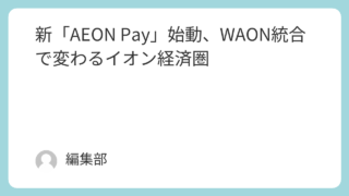 IT 新「AEON Pay」始動、WAON統合で変わるイオン経済圏 このニュースが報じられた年月日2025年6月26日同じニュースを報じている記事一覧とリンクイオン株式会社: “AEON PayとWAONが統合” 新『AEON Pay』が2025年6月26日よりサービス開始Impress Watch: AE... 2025.06.26 IT経済金融