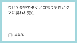 保険 なぜ?長野でタケノコ採り男性がクマに襲われ死亡 このニュースが報じられた年月日2025年06月22日同じニュースを報じている記事一覧とリンクFNNプライムオンライン: 【続報】クマに襲われ46歳男性が死亡 70歳男性も負傷 タケノコ採り中に襲われるNBS長野放送: クマに顔面かまれ46歳... 2025.06.22 保険地域社会