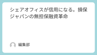 不動産 シェアオフィスが信用になる。損保ジャパンの無担保融資革命 このニュースが報じられた年月日2025年7月1日同じニュースを報じている記事一覧とリンク住宅新報: 損保ジャパン 不動産大手のシェアオフィスに照準 銀行、無担保融資に道このニュースの3つのポイント損害保険ジャパンが、不動産会社と連携し、シェ... 2025.07.01 不動産保険金融