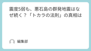 災害 震度5弱も、悪石島の群発地震はなぜ続く?「トカラの法則」の真相は このニュースが報じられた年月日2025年07月02日同じニュースを報じている記事一覧とリンクウェザーニュース: トカラ列島近海の地震で再び震度5弱 近年に比べ活発な活動が長期化朝日新聞デジタル(YouTube): 群発地震続く悪石島 震度4... 2025.07.02 災害社会