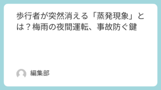 事故 歩行者が突然消える「蒸発現象」とは?梅雨の夜間運転、事故防ぐ鍵 このニュースが報じられた年月日2025年06月20日同じニュースを報じている記事一覧とリンク朝日新聞デジタル(YouTube): 目の前の歩行者が突然消える「蒸発現象」 梅雨の夜、運転は要注意FNNプライムオンライン: 運転手からは人が消え... 2025.07.02 事故交通社会