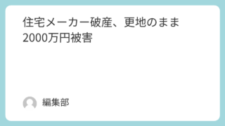 不動産 住宅メーカー破産、更地のまま2000万円被害 このニュースが報じられた年月日2025年06月22日同じニュースを報じている記事一覧とリンクABEMA: 「人生狂った」住宅メーカー破産に怒り 約2000万円支払うも…更地のままUXTV: 約2000万円払うも家建たず…返金なし「ニコハウス... 2025.06.22 不動産法律金融